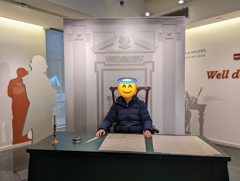Nothing much to say - it’s a must-see for tourists. Unfortunately, we couldn’t get tickets to Independence Hall next door, so I read Philadelphia Storm for nothing! 😂 I had to pose for a photo “signing the Constitution” at the nearby visitor center: