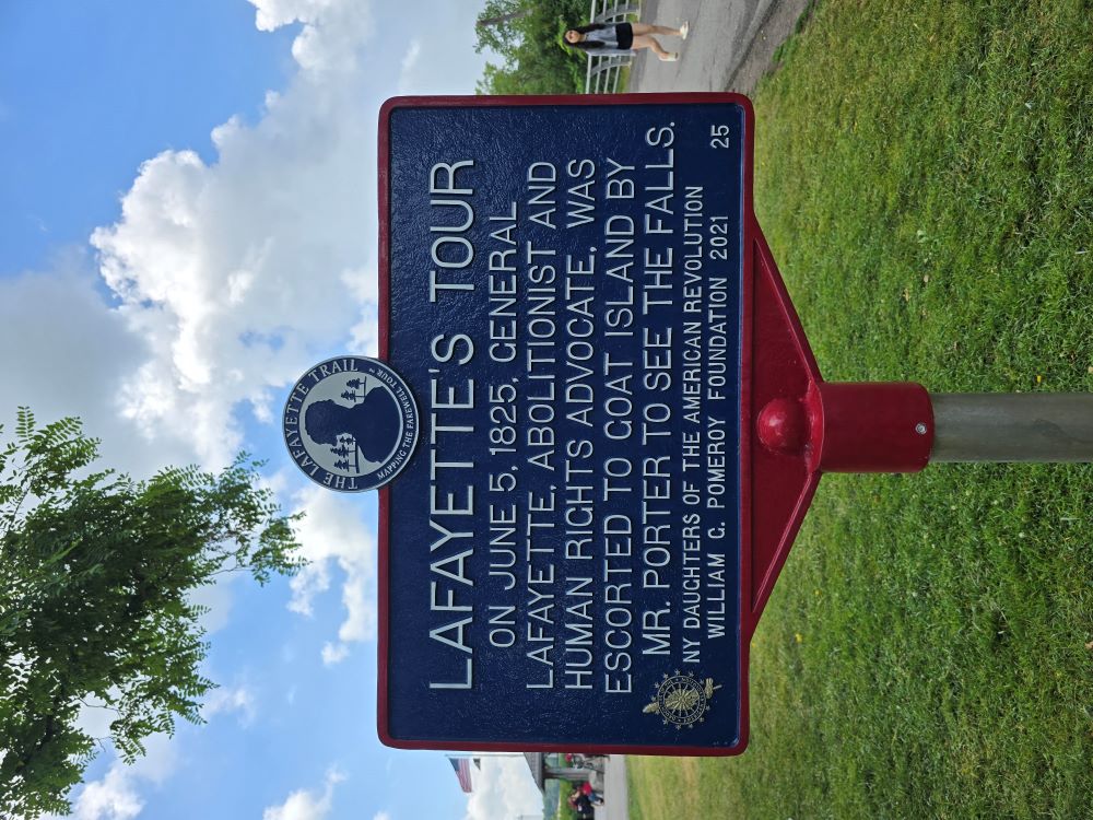 Then I spotted a familiar red, white, and blue historical marker — could it be the Marquis de Lafayette again? This was my third unexpected “meeting” with him after Hartford and West Point. The sign noted that Lafayette was an abolitionist and human rights advocate — as early as 1783, he called for the abolition of slavery, challenging even Washington, Jefferson, and Madison. Many abolitionists came to Niagara Falls, as it was a key stop on the Underground Railroad; countless freedom seekers crossed here into Canada.