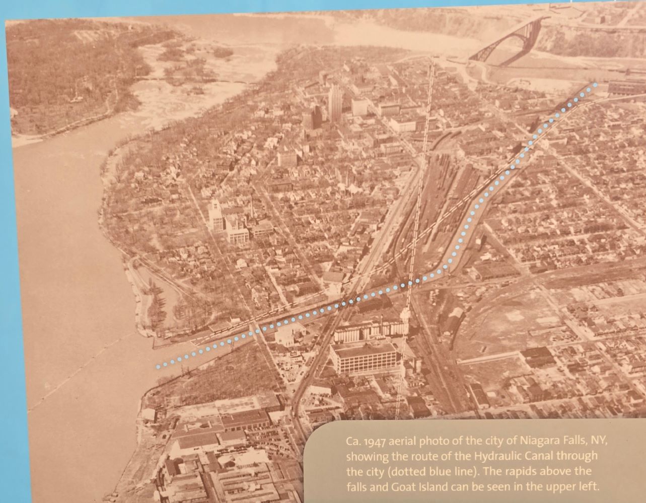 Looking north toward the Rainbow Bridge (Point 10 on the map), connecting the U.S. and Canada.