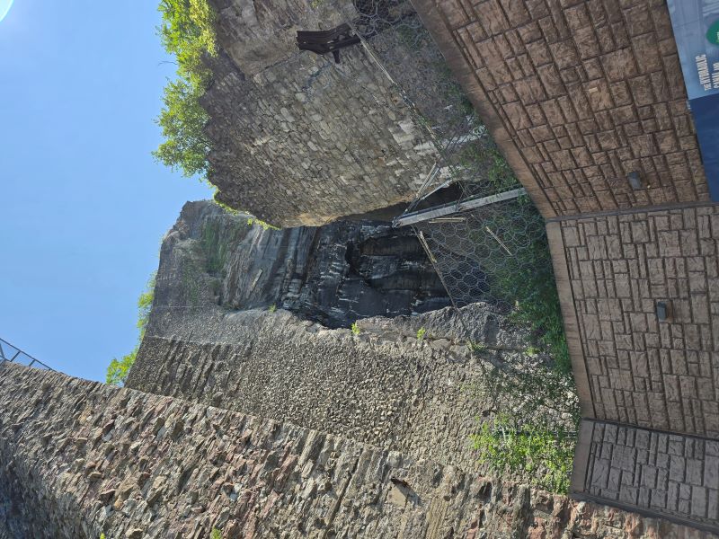 By now, we had seen most of the major attractions. It was still just past noon, so after lunch, we decided to check out the Schoellkopf Power Station ruins (Point 11 on the map)2. It was nearly a half-hour walk3 before we reached a building by the cliff.