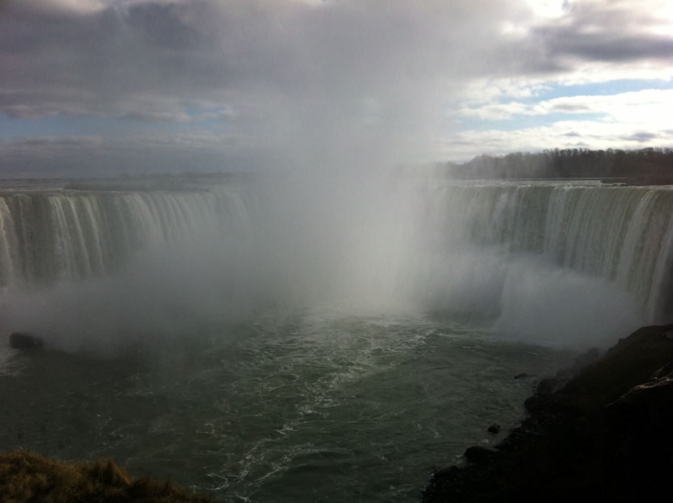 For comparison: the Horseshoe Falls from the Canadian side in winter over a decade ago — can you see the reduced flow? (Taken on an old iPhone 4!)
